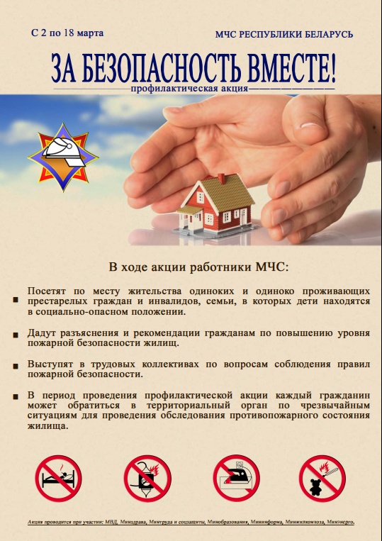 Для повышения уровня безопасности населения, координации деятельности субъектов профилактики правонарушений в области обеспечения пожарной безопасности, активизации пожарно-профилактической работы со 2 по 18 марта 2026 года в Гродненской области проводится республиканская профилактическая акция «За безопасность вместе».