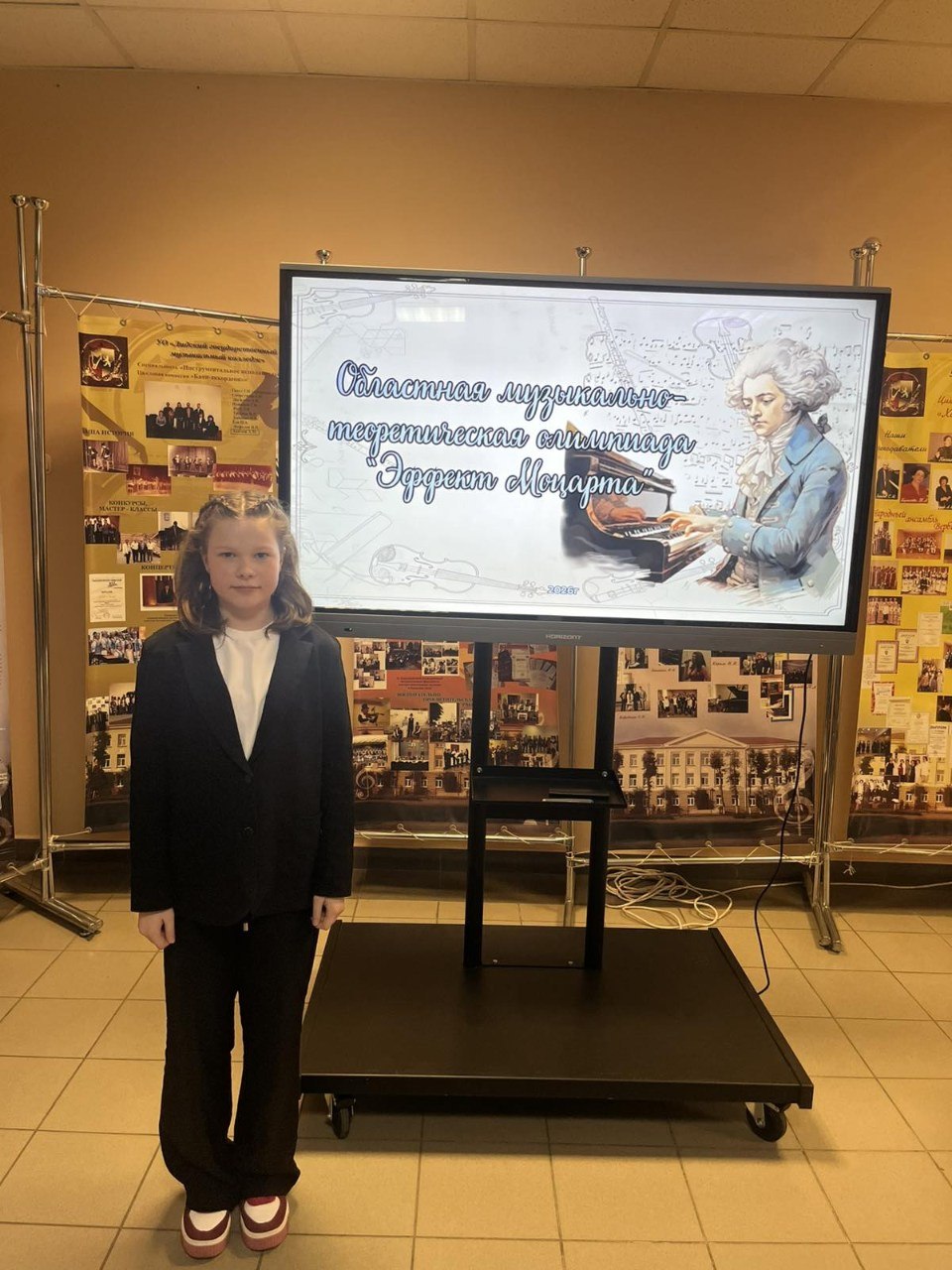 9 апреля 2026 г. в Лидском государственном музыкальном колледже состоялась областная музыкально-теоретическая олимпиада «Эффект Моцарта», приуроченная 270-летию со дня рождения великого гения. Нашу школу представили учащиеся Максимова Елена и Ринкевич Виктория (учителя Киють Ирина Геннадьевна и Молошникова Инна Владимировна).