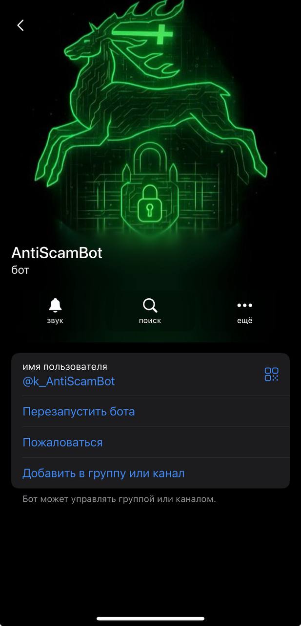 Вы легко найдете его по запросу "https://t.me/k_AntiScamBot" в поисковике телеграмм. Не откладывайте проверку на потом, добавьте ссылку в закладки и используйте при малейшем подозрении.